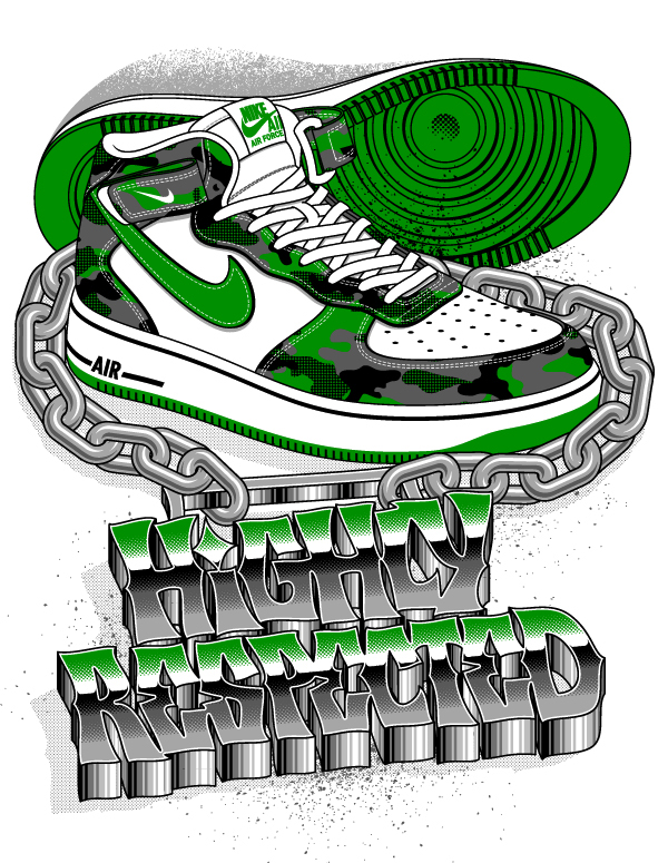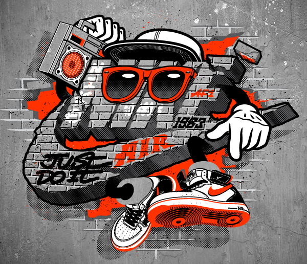 Ilustraciones de arte urbano con Nike, dignos de llevarlos en art prints de playeras.